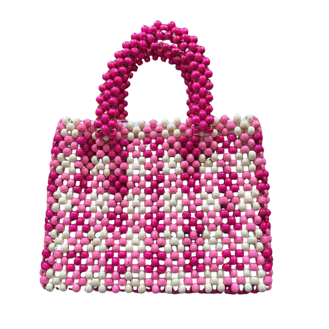 Handmade beaded bag made out of natural wooden beads. Lovingly crafted by our artisans from Batasan